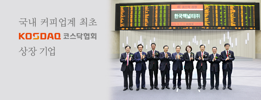 한국맥널티㈜는 국내 커피업체 최초 코스닥 상장기업으로 커피제품 생산, 유통뿐만 아니라 외식 및 교육 사업까지 지난 20여년간 커피에 대한 모든 것을 실현해 왔습니다. 다년간 쌓아온 노하우와 신기술을 바탕으로 제약 사업과 건강식품분야 까지 새롭게 도약하며 Total Healthcare 회사로의 발전을 지향하고 있습니다.